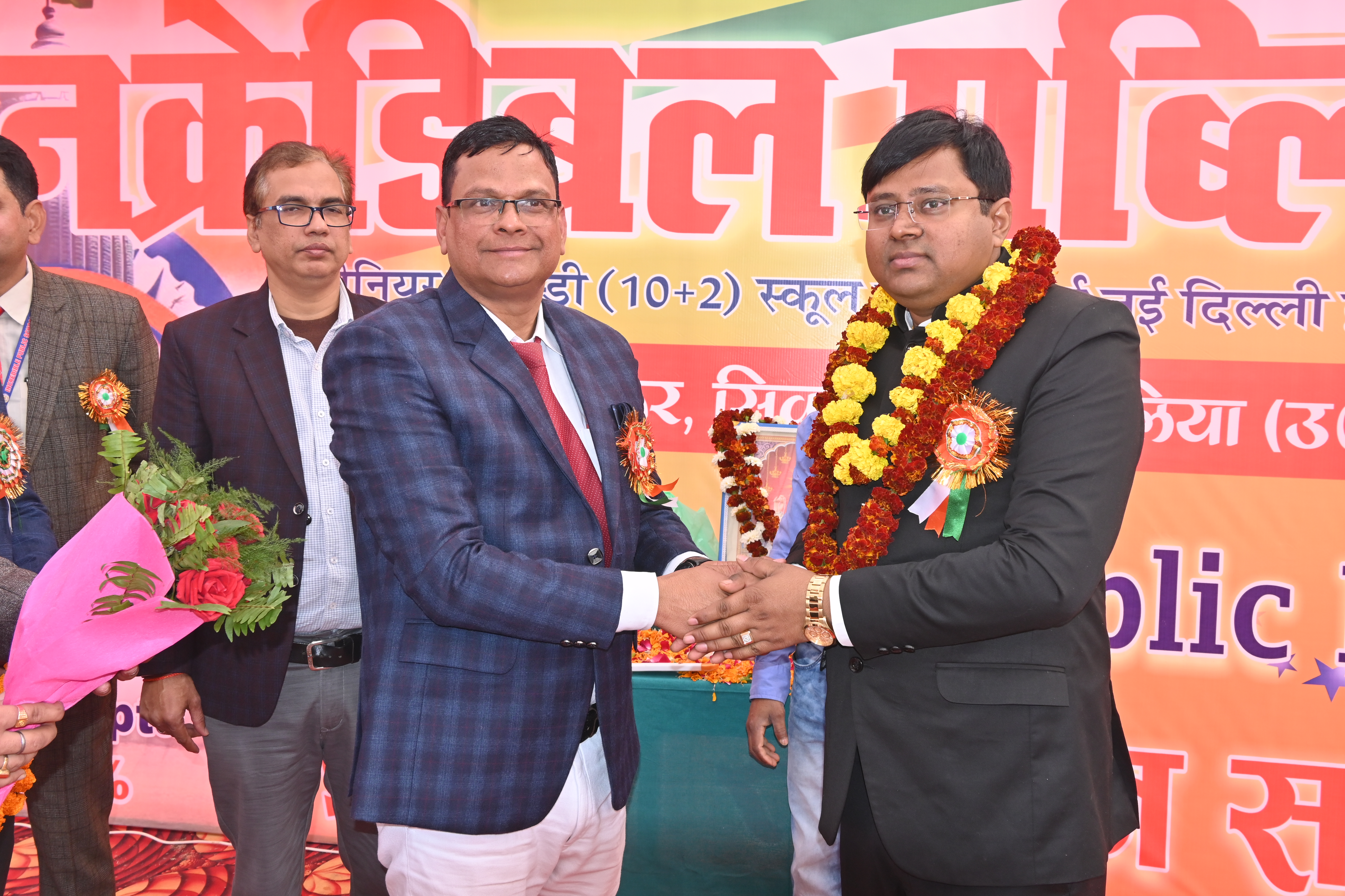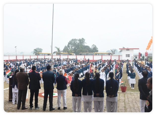 The Republic Day celebration commenced with the hoisting of the national flag by our esteemed Principal Shri Raghvendra Tripathi. As the flag unfurled and the National Anthem echoed across the campus, the students and